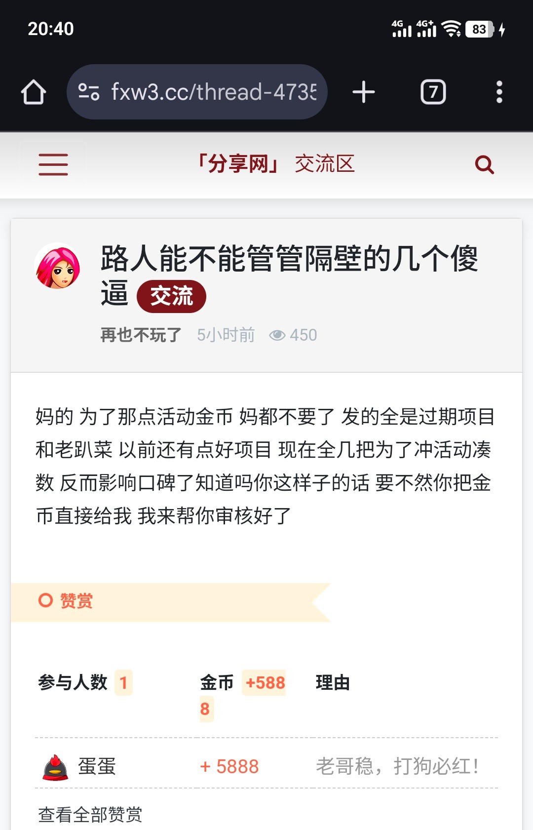 分享网致力打造全网最大的白嫖论坛,与狗庄斗智斗勇,让海外各大平台公司头痛畏惧,我们打击了狗庄嚣张气焰破坏,狗庄国内生存环境做出一份力量,如他人需要请把我们的“家”分享给更多需要的老哥。