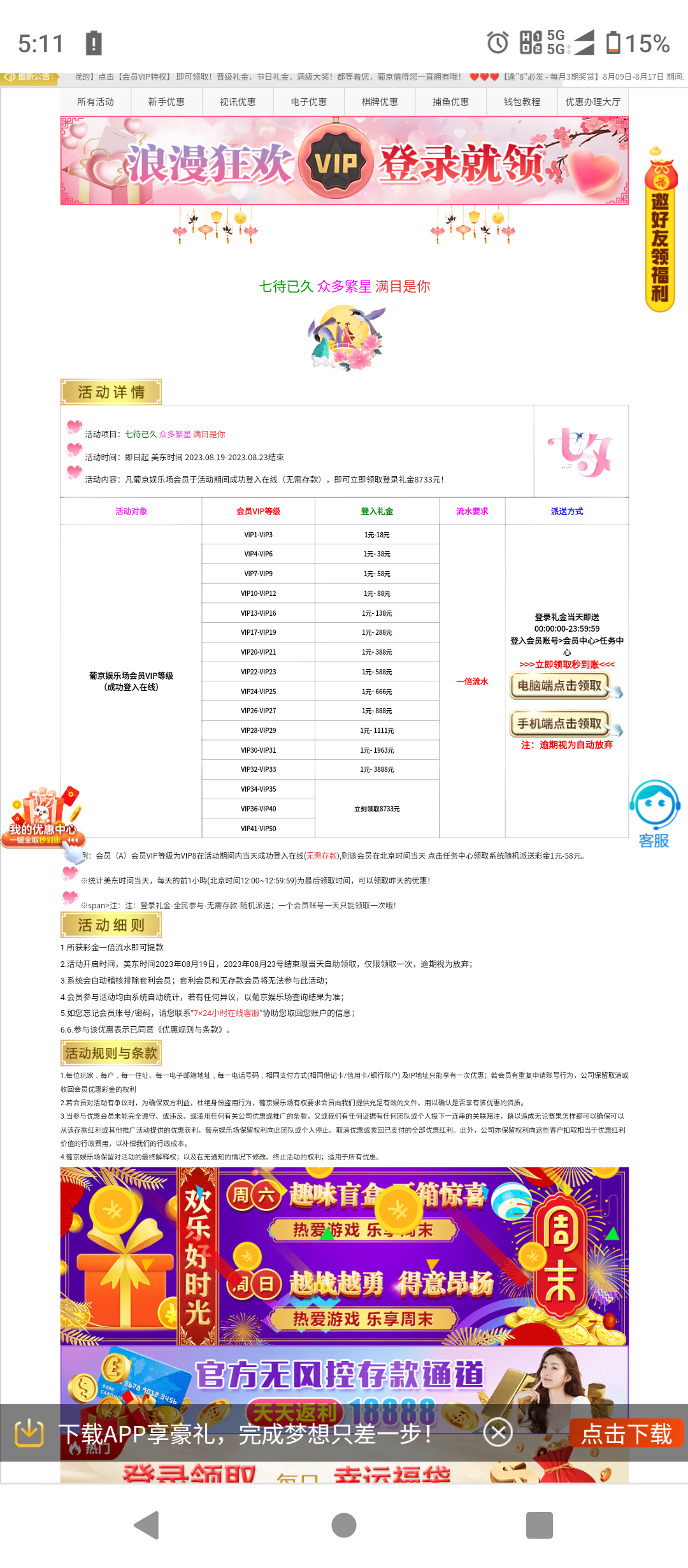 v1以上才有,这台子就是经常有人问送388、588实际充值送10%的台子,链接看图片上有,符合条件的可以去,今天明天还可以领两天