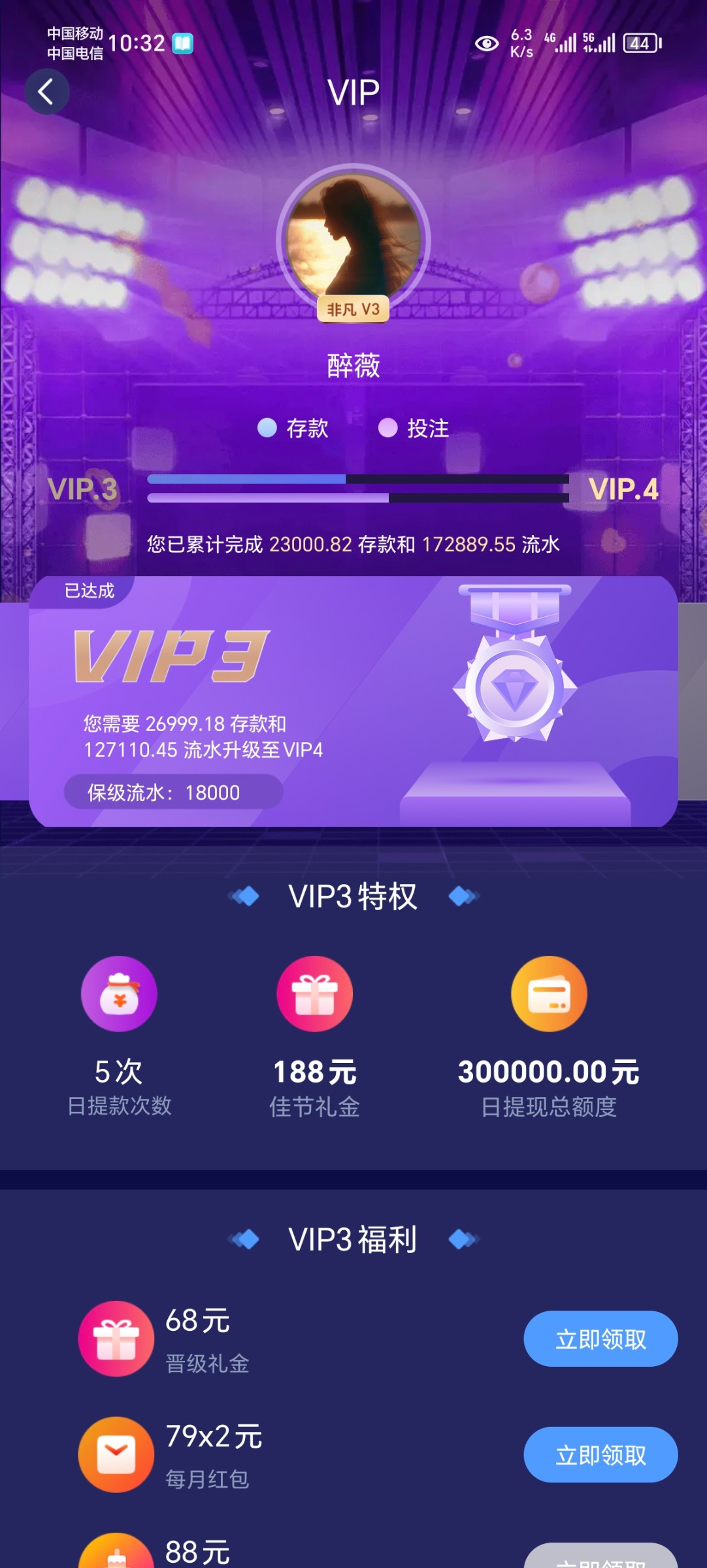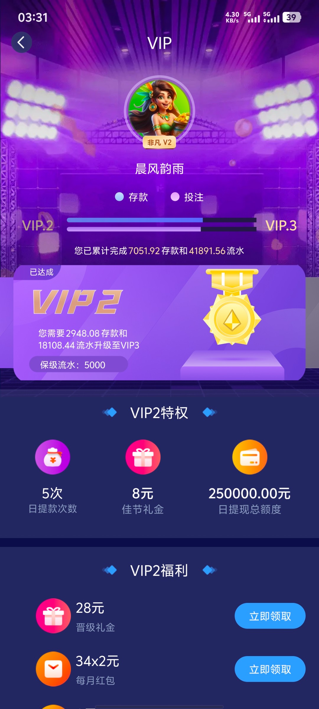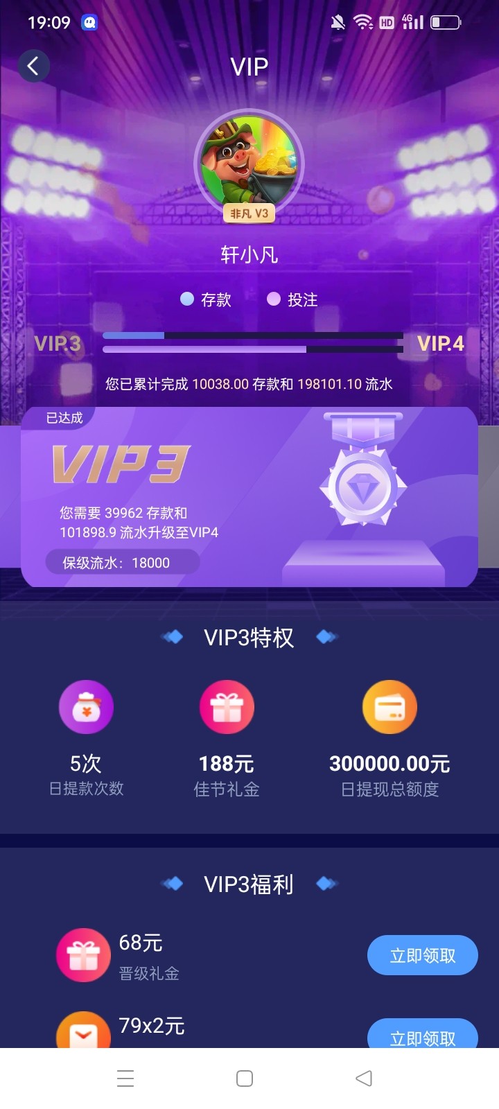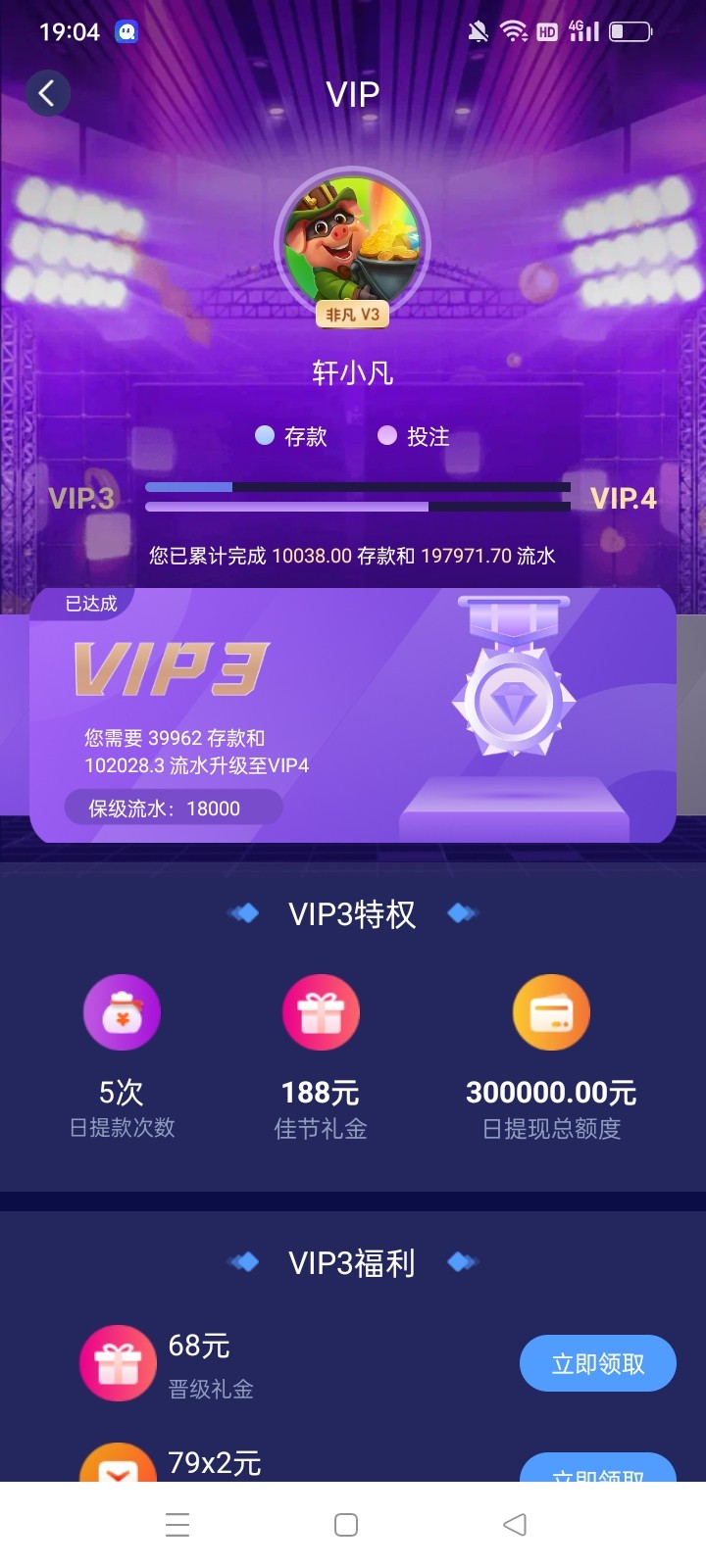 非凡存了几千,除了论坛抢楼没领官网任何彩金,你这送个188或者108吧,happy2046
