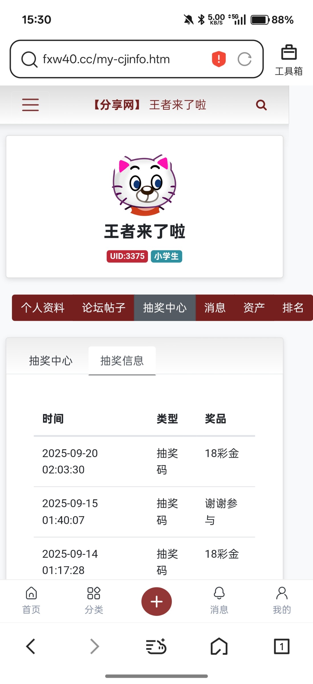 回帖抽奖中18彩金什么时候送,还中非凡扶持88彩金,随便送点吧非凡账号pm02468