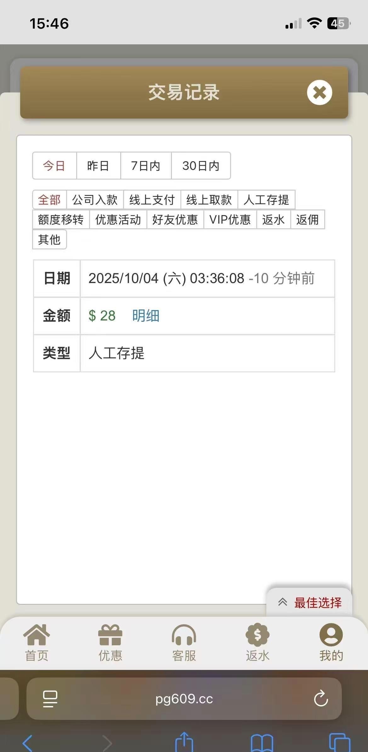 打电话过来的,注册绑定手机号即可领取彩金,可以试试,联系在线客服申请,我领到了28彩金,满50以上可以提现钱包网址:klpg.cc