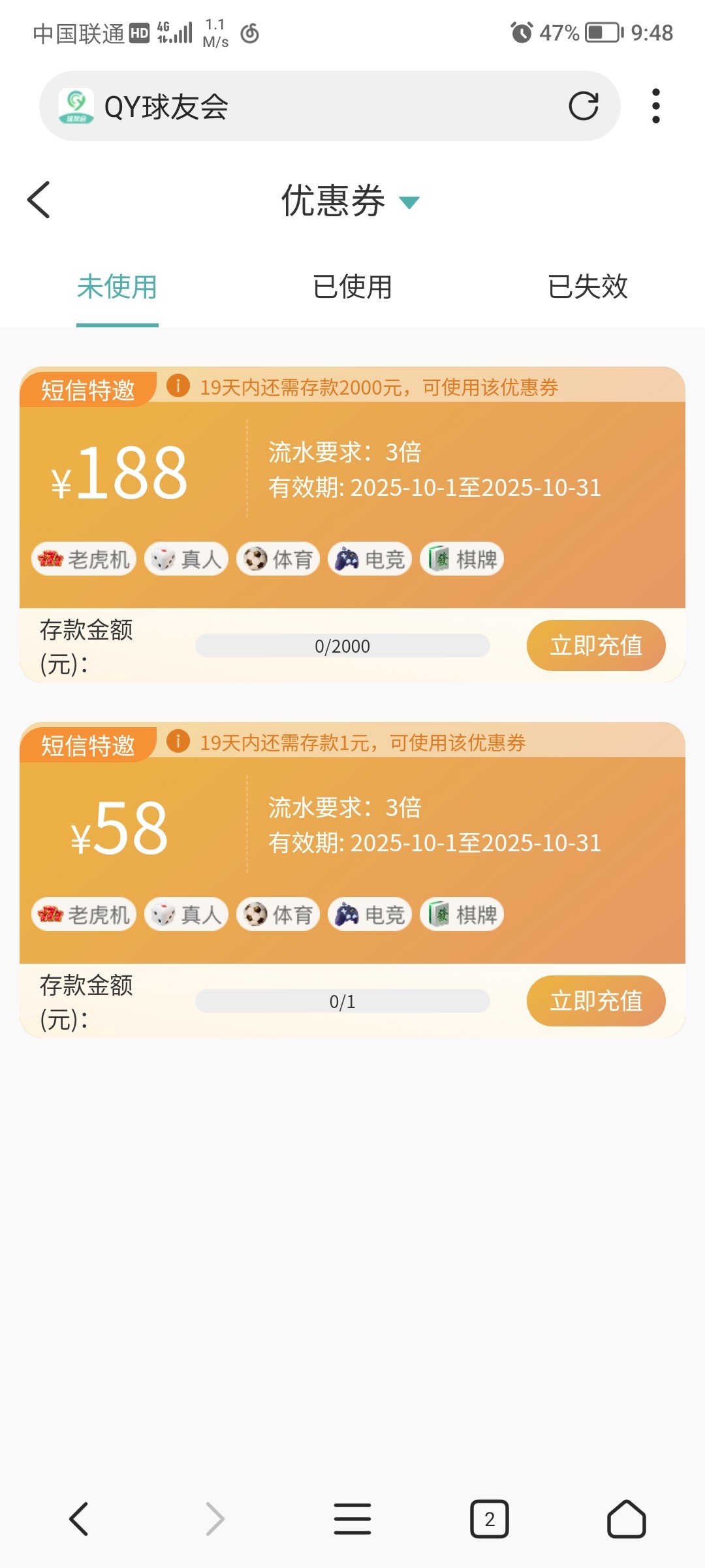 我看了最低充50得58,可不可以充10块打狗