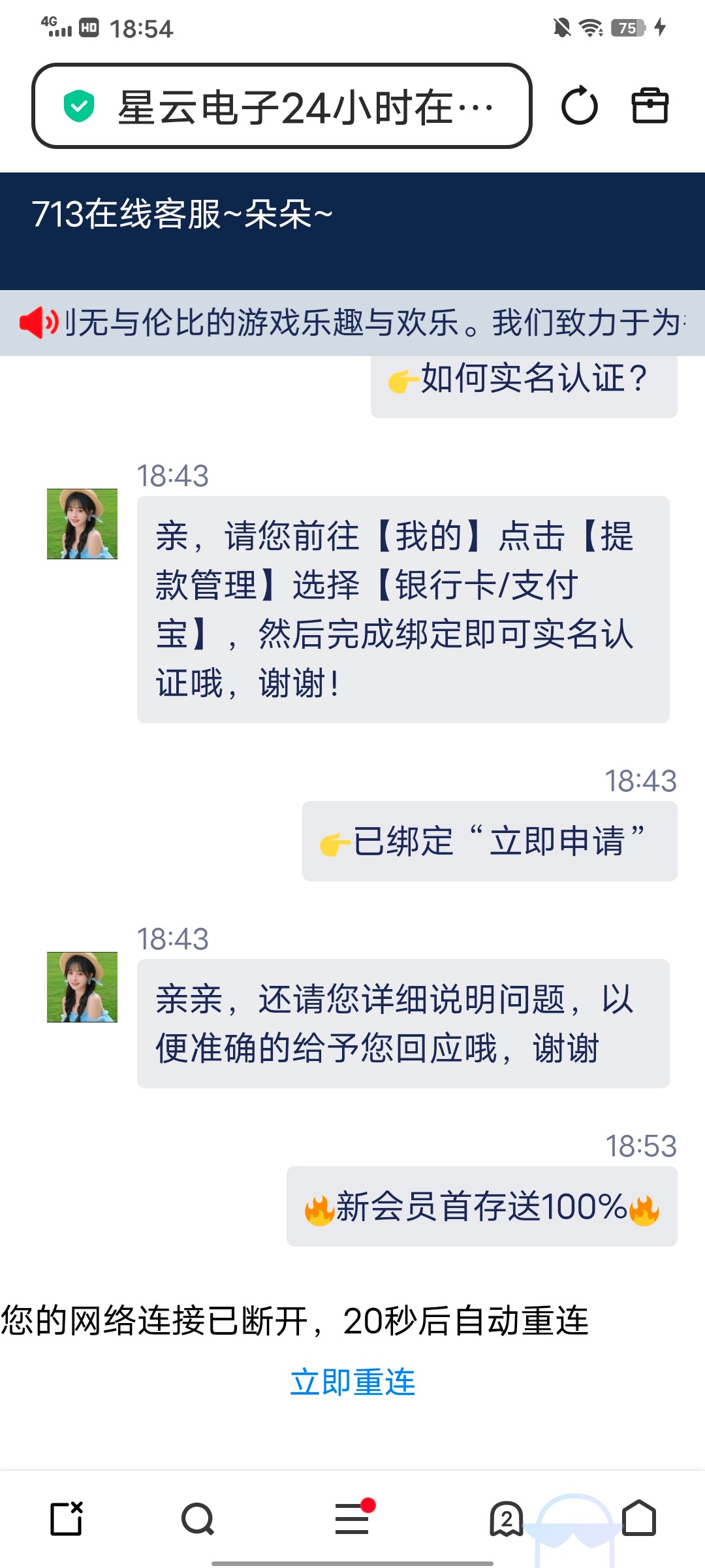 星云客服打不开网址的一直中断连接,app的客服也是一直打不开