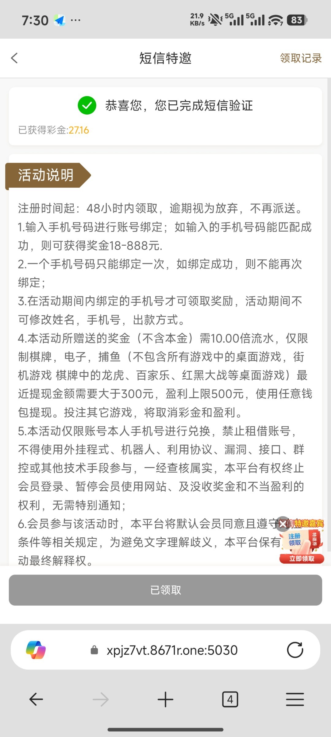 新葡京8671——短信验证彩金