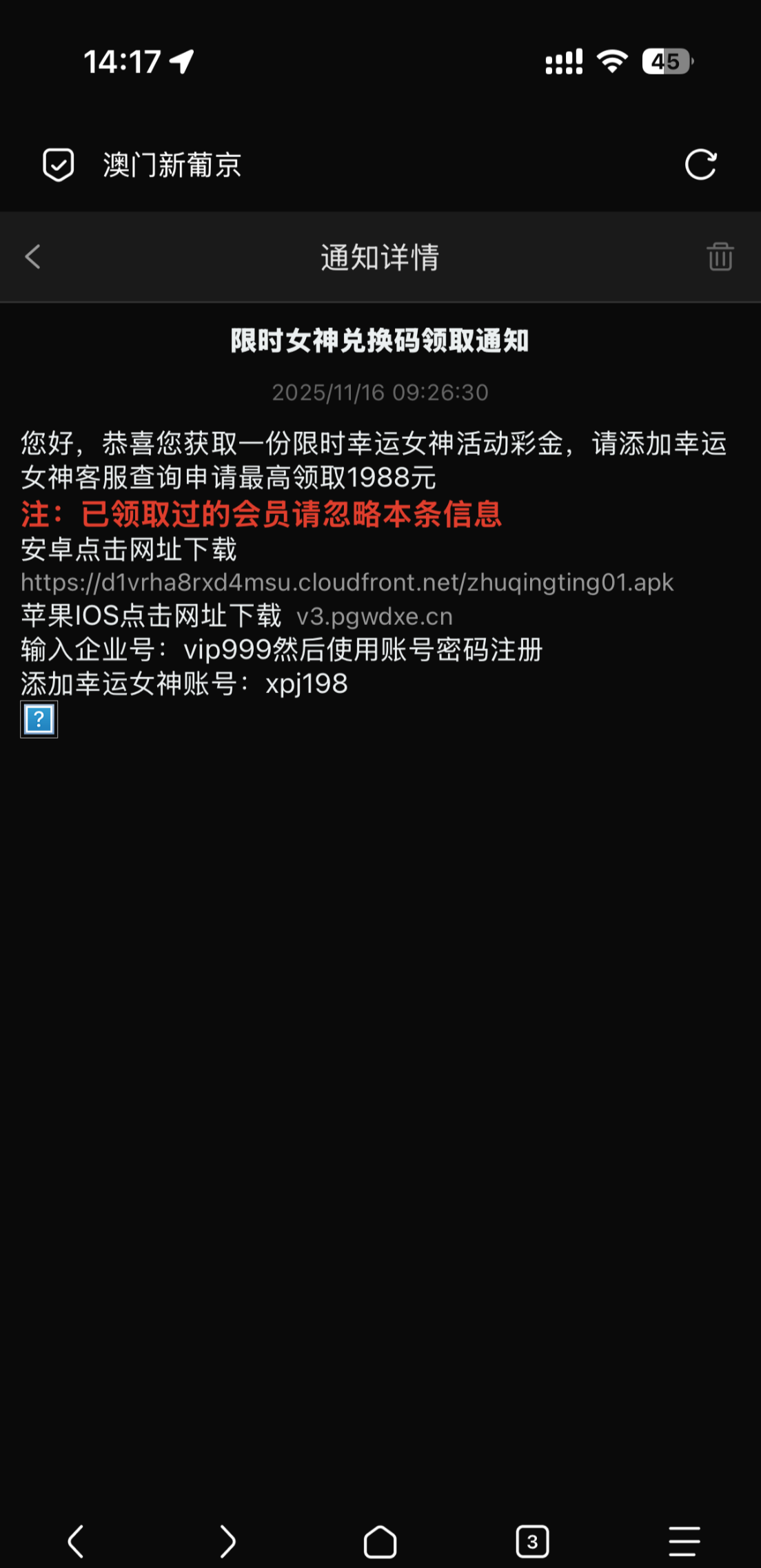 3、本站资源均来自互联网-需自行判断与负责。每日更新(论坛内容仅用于 薅羊毛 白嫖 论坛严禁充值娱乐 严禁任何形式推广 发现一律提交当地公安 )感谢您的支持!