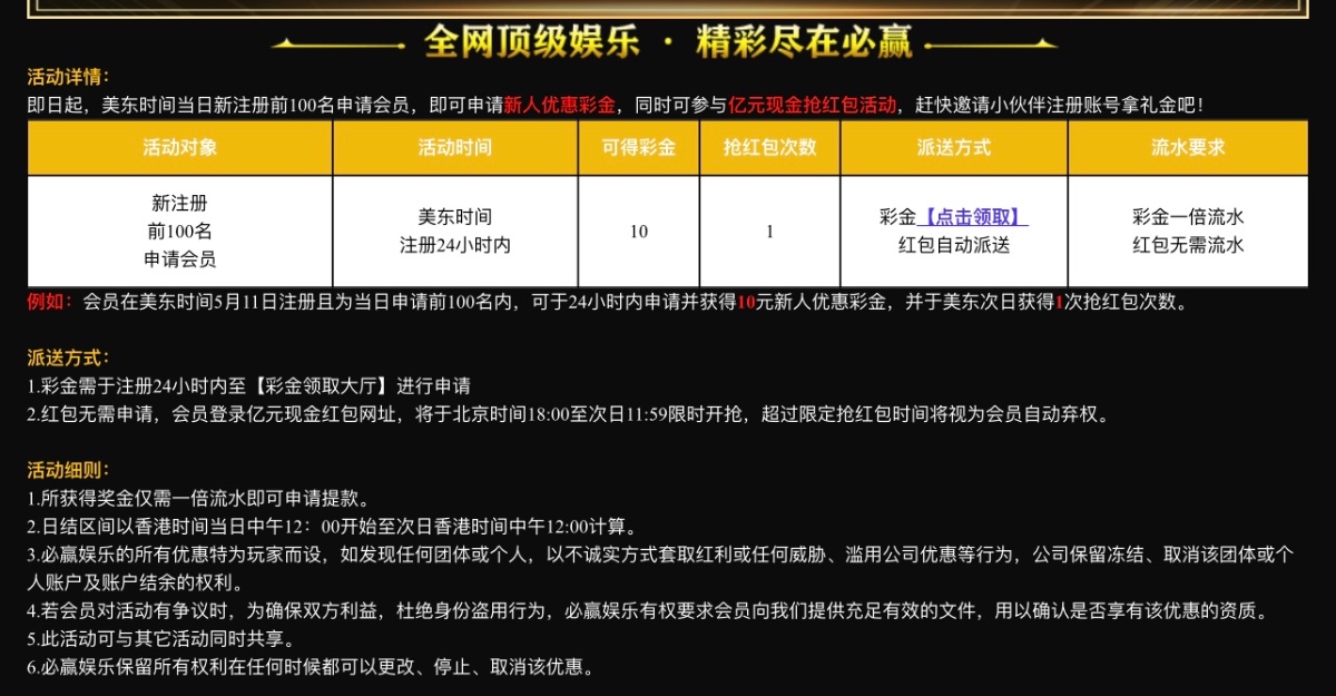 必赢,原九五每天新注册的前100名送10