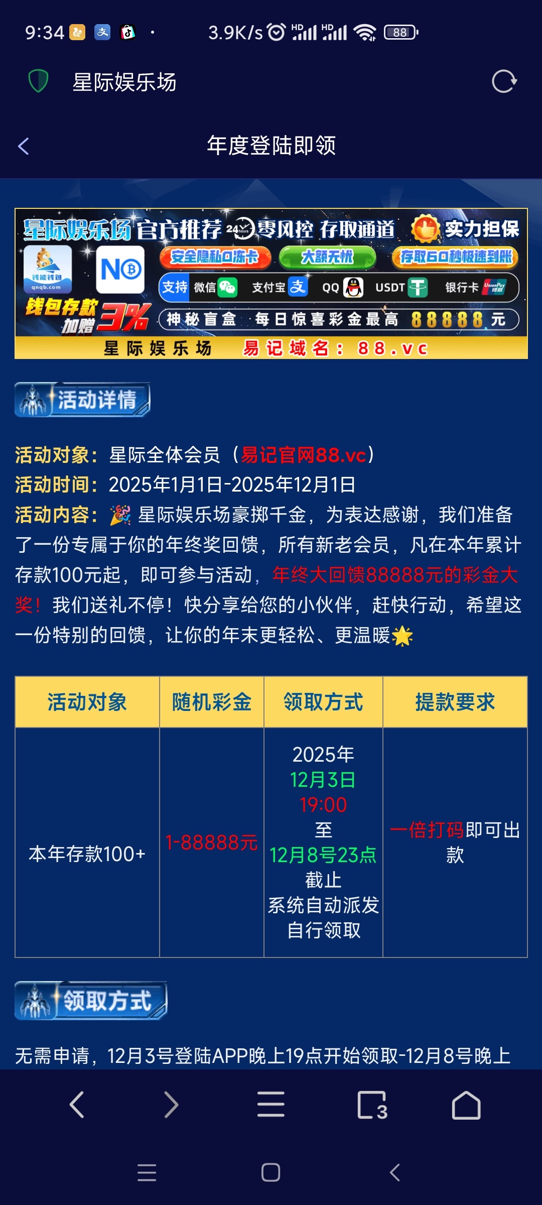 【88星际】—✅—年度充值回馈