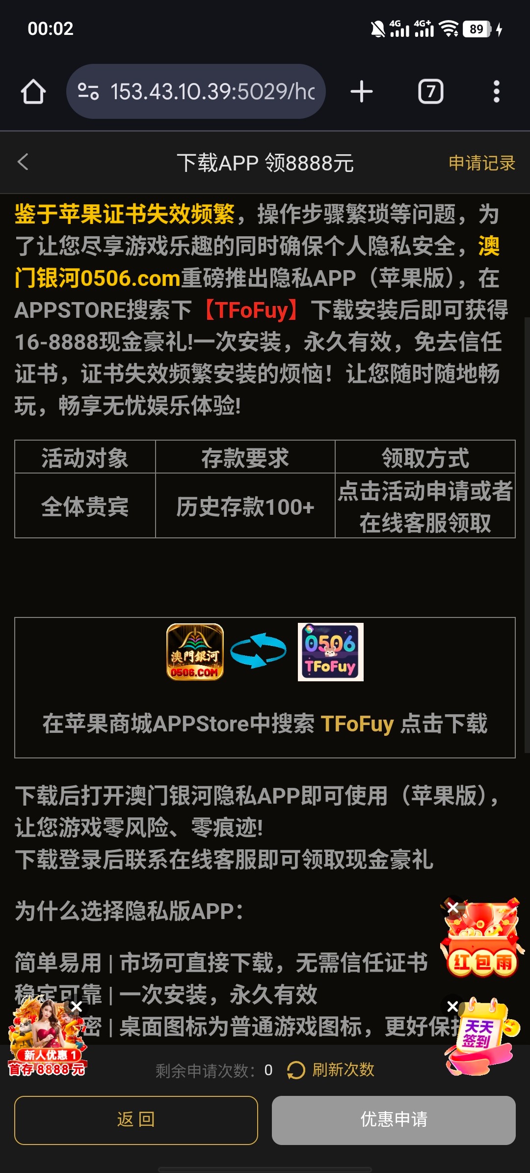 历史充值过100+的自助申请