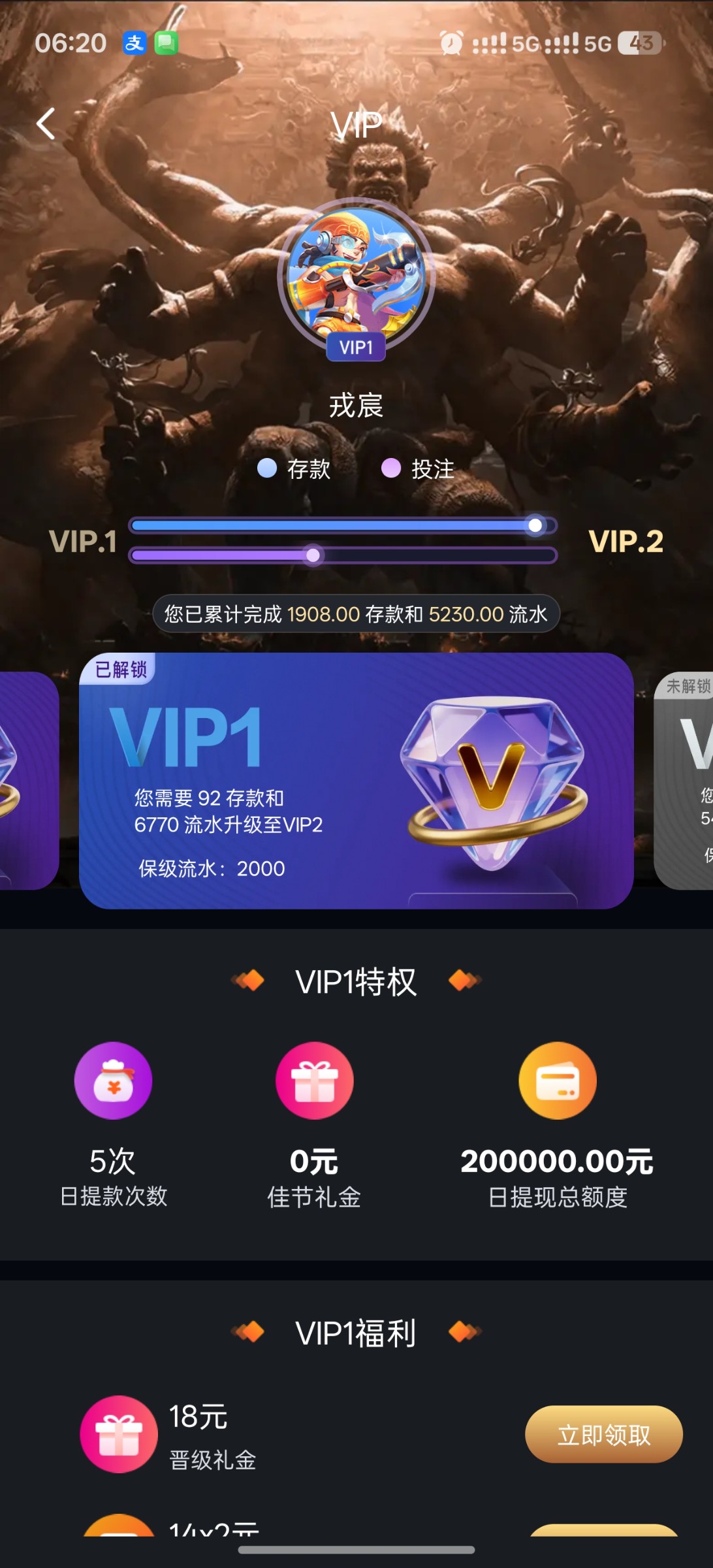 胜天充值了2.5k,打了6w的流水申请688彩金