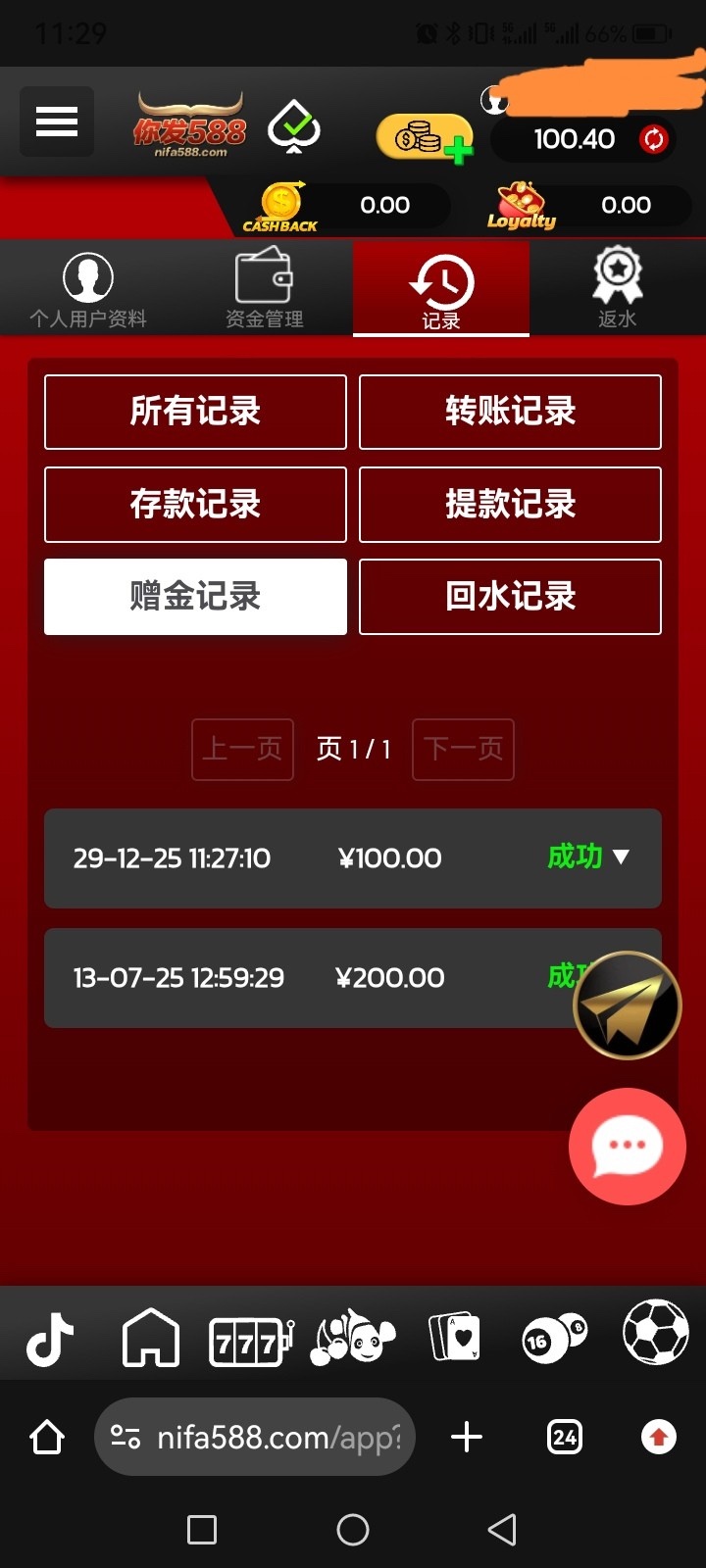 nifa588.com 以前送200不限制游戏,这次送的100限制游戏