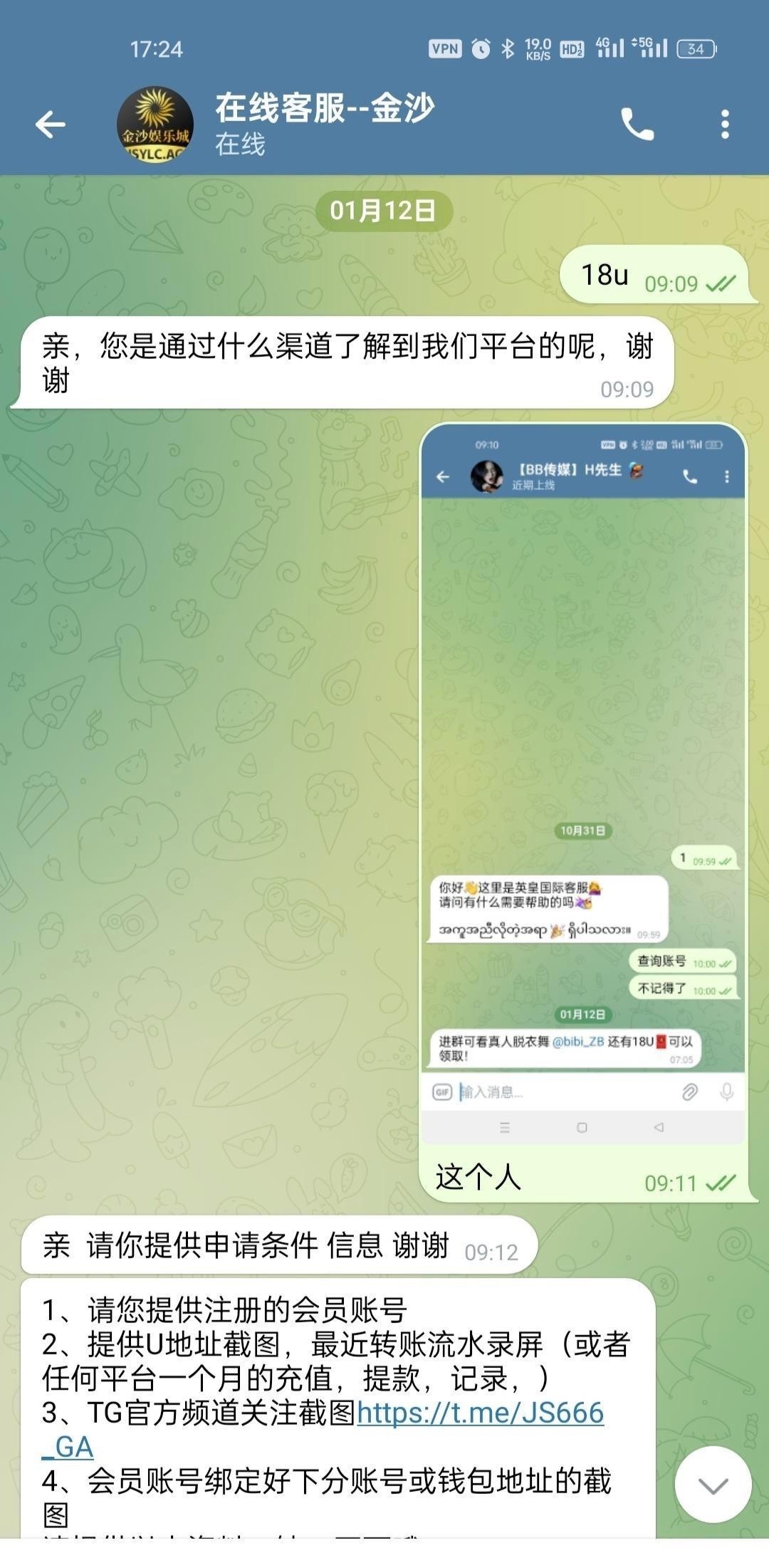 他会问你怎么来的,你截图上面这个群给他里面看到的自己圆。 我打了800u,最高只能提现38u网址https://t.me/bibi_ZB