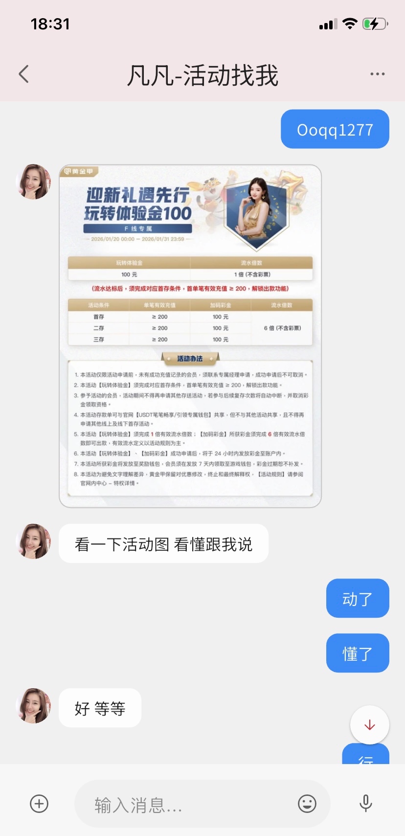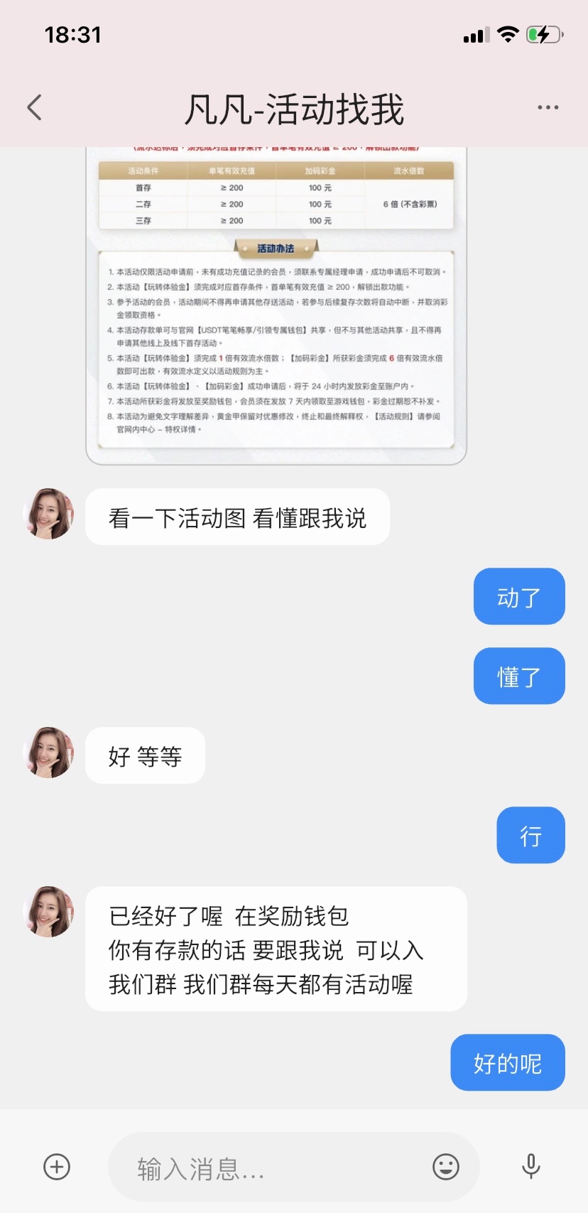 体验金先下载玄武聊天app链接https://www2.xw1.app/ 邀请码:qq5757 打电话的客服说要填,注册好了之后找活动客服要链接,注意查手机号的!!!彩金要出款要充值,个人建议无聊的老哥来玩,当欢乐豆打就行了