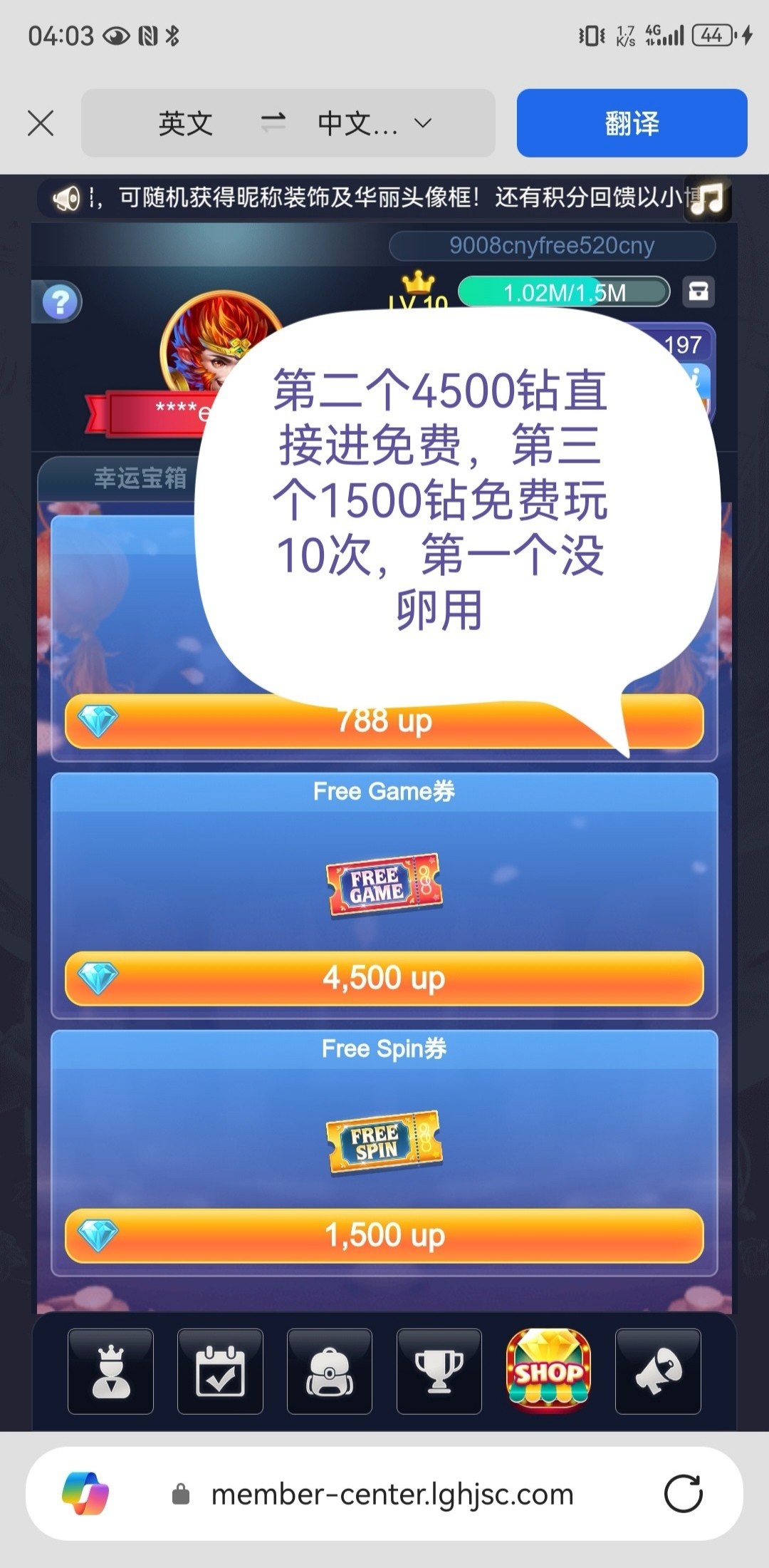 cq9电子玩了有累计钻石,可以抽免费游戏,全是英文,我是之前玩的半夜没事看见。有搞出来的老哥打赏打赏,随便进个游戏就行,我进的单手跳高高