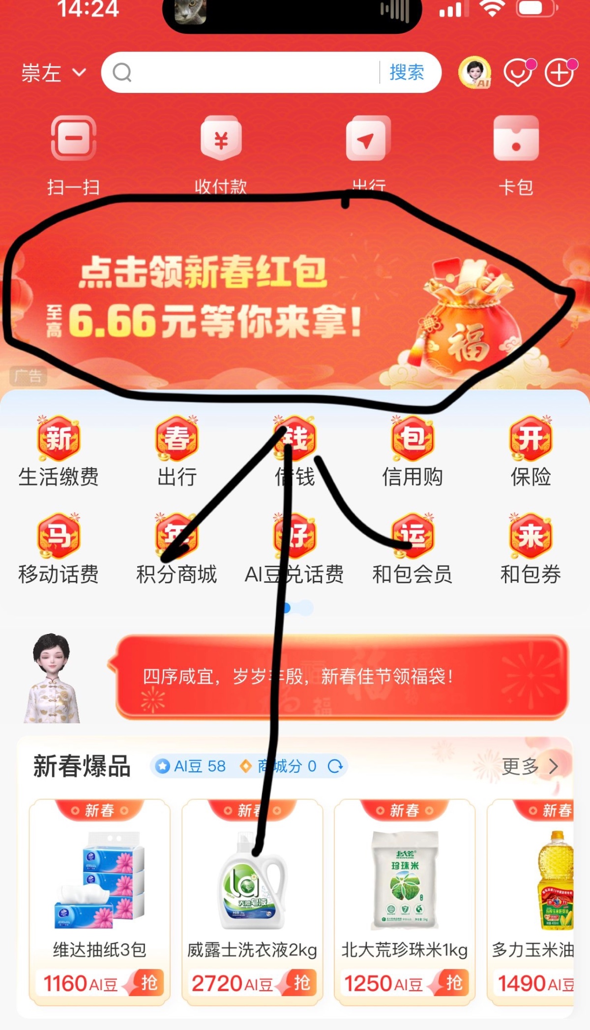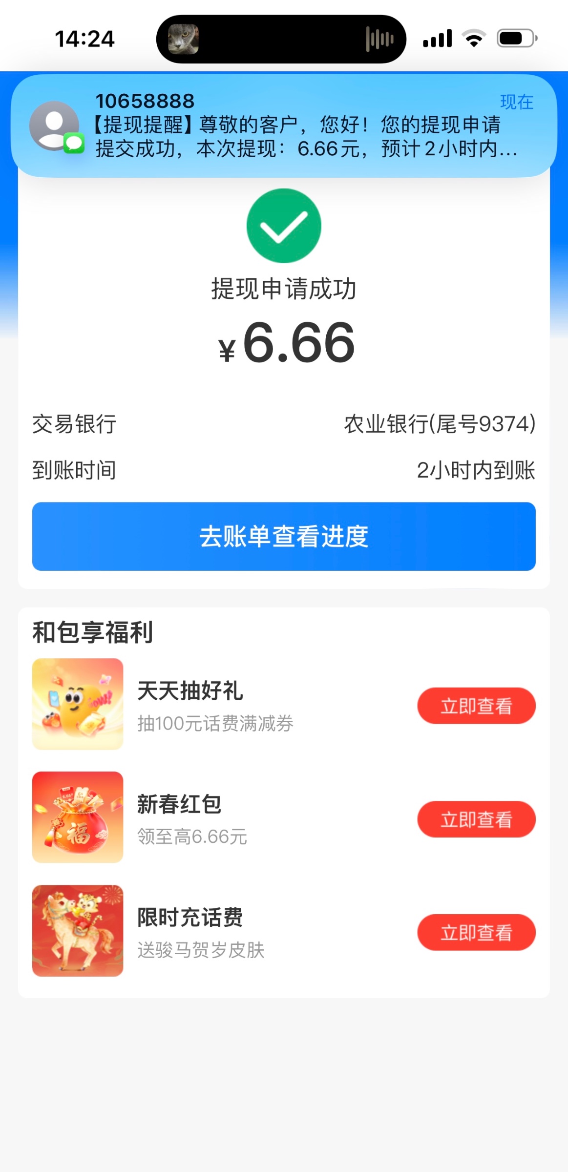 下载移动和包首页这个6.66进去绑卡就能提现
