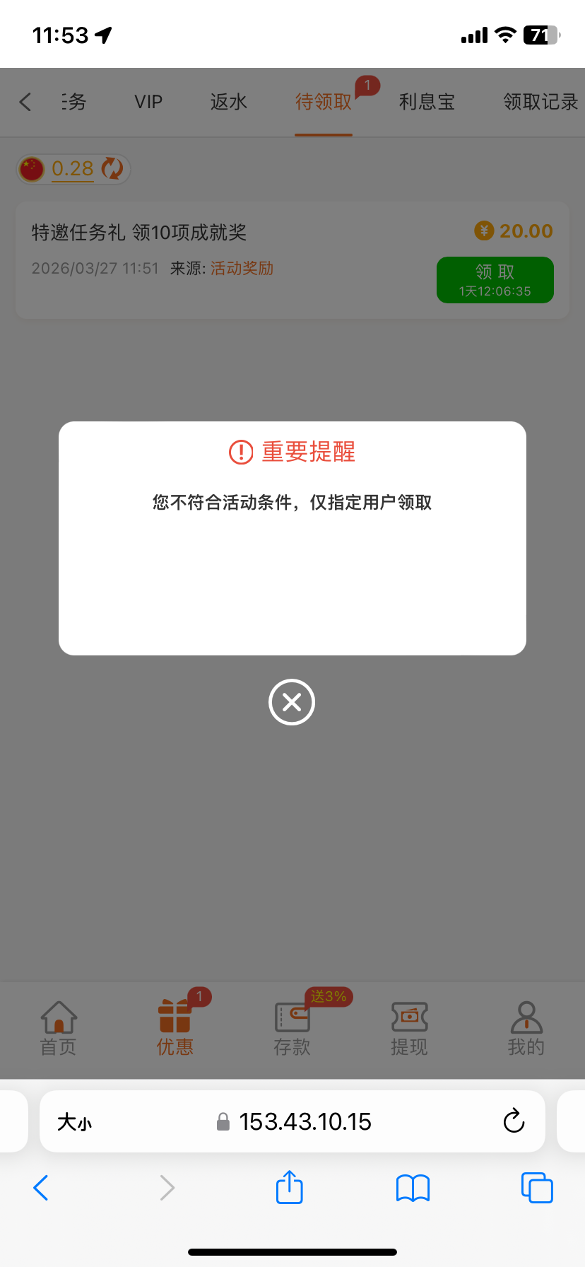 操他妈的 不让我领取 我还充值过